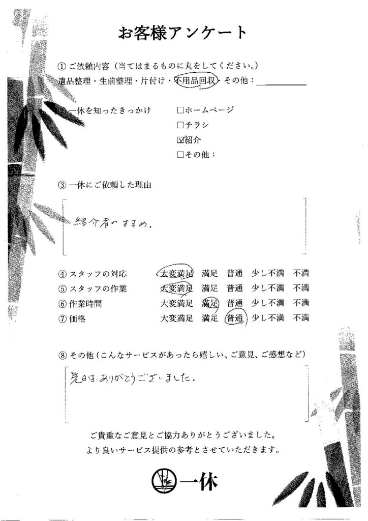 ご依頼・アンケートのご協力誠にありがとうございました。