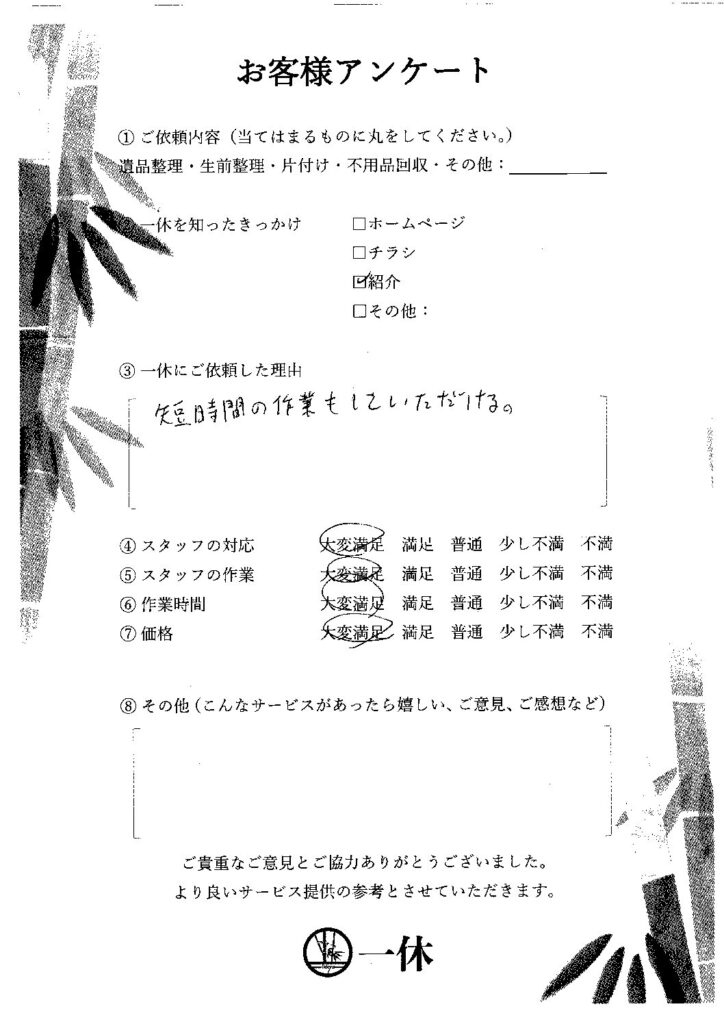 ご依頼・アンケートのご協力誠にありがとうございました。