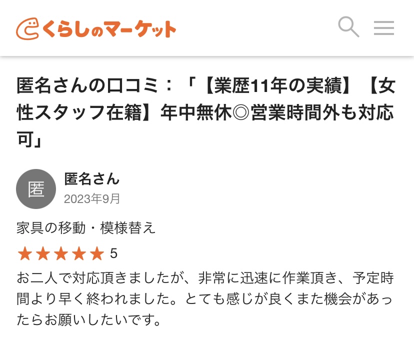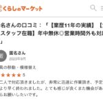 今回は、”くらしのマーケット”さん経由でお問い合わせいただきましたお客様の口コミのご紹介となります。