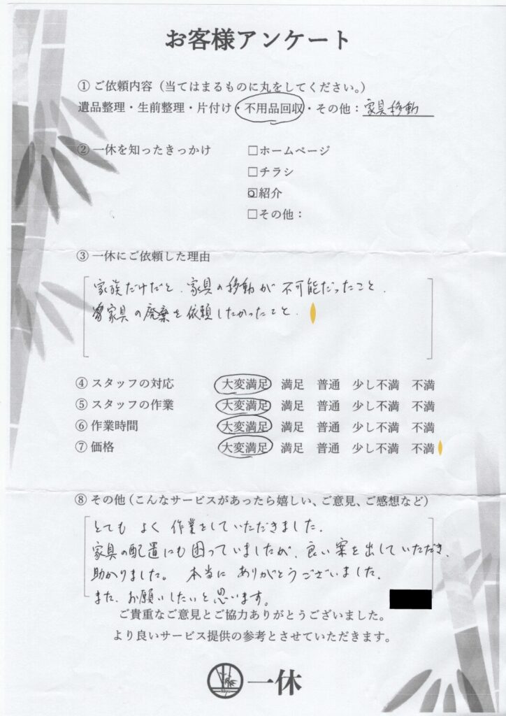 また、家具の移動がお客様と一緒に悩みながら一休(いっきゅう)なりのご提案をさせていただきましたが、ご満足いただけたようでよかったです🌸