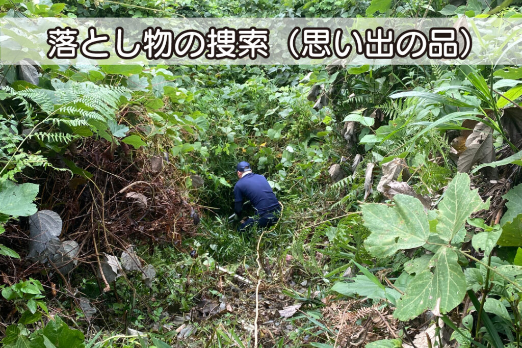 落としてしまった場所が、草木の生い茂った崖のような場所でスポット2時間という形で作業をさせていただきました。