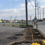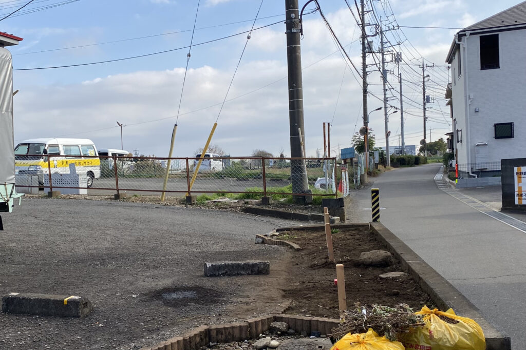 土地の境界などの関係で、看板周辺を掘り、切断後に地面の舗装をする方法で作業を行わせていただきました。