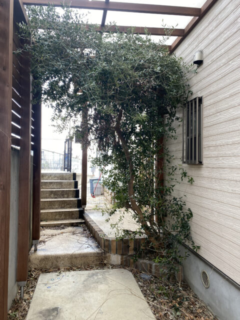 今回は不動産屋さん経由のご依頼で、オリーブの木を根本から切って欲しいという内容でした。